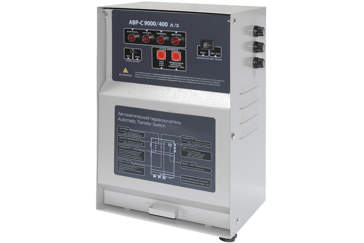 Блок АВР для бензинового генератора 6-8 кВт/400 включает в себя систему автозапуска (автоматического ввода резервного электропитания). При появлении основного источника электропитания происходит отключение электростанции. Блок автоматического управления для контроля наличия напряжения в сети. Блок АВР-С 9000/400 л/з совместим со следующими генераторам: 030021 Бензогенератор TSS SGG 7000E3A 021303 Бензогенератор TSS SGG 7500Е3A 190051 Бензогенератор TSS SGG 9000E3LA